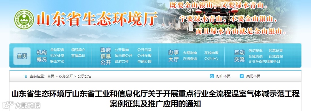 山东省生态环境厅山东省工业和信息化厅关于开展重点行业全流程温室气体减示范工程案例征集及推广应用的通知