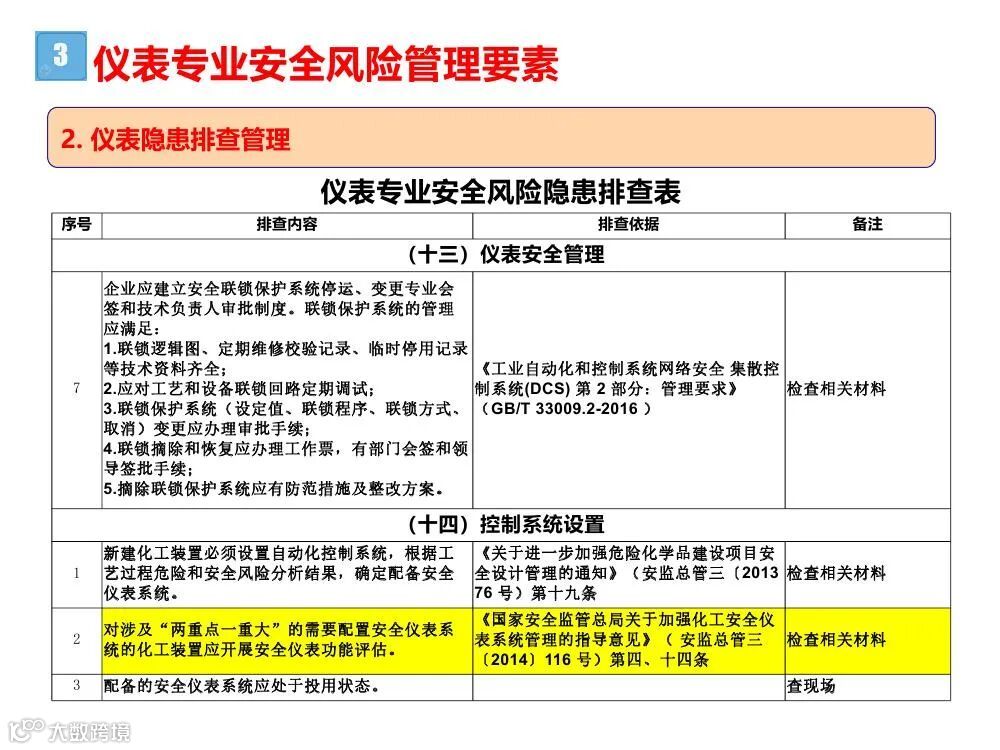 (十三)从2018年1月1日起,所有新建涉及“两重点一重大”的化工装置和危险化学品储存设施要设计符合要求的安全仪表系统。其他新建化工装置、危险化学品储存设施安全仪表系统,从2020年1月1日起,应执行功能安全相关标准要求,设计符合要求的安全仪表系统。