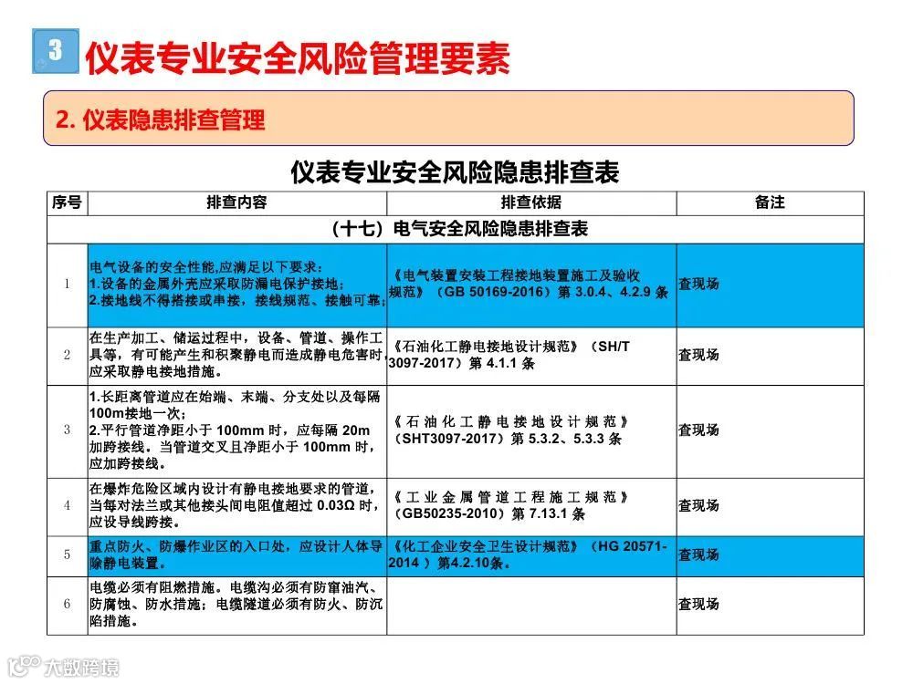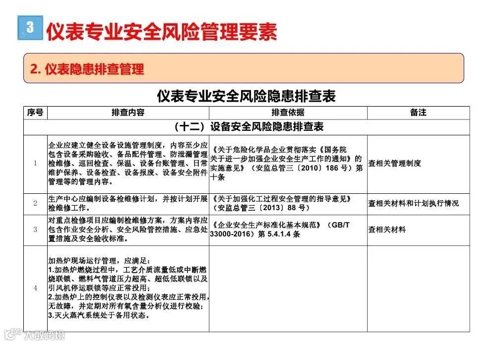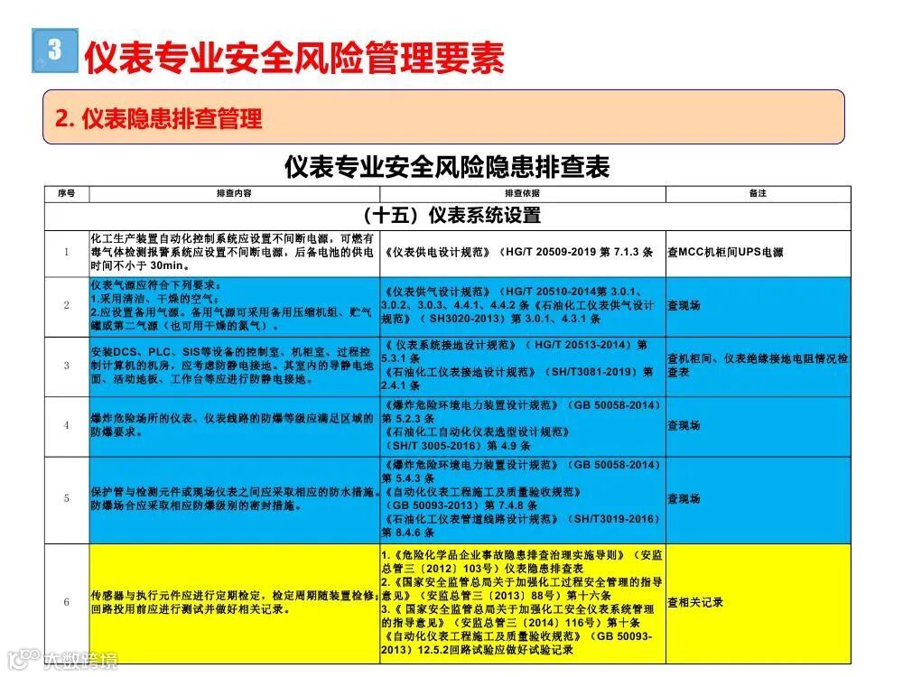 3.专业性排查是指工艺、设备、电气、仪表、储运、消防和公用工程等专业对生产各系统进行的检查;