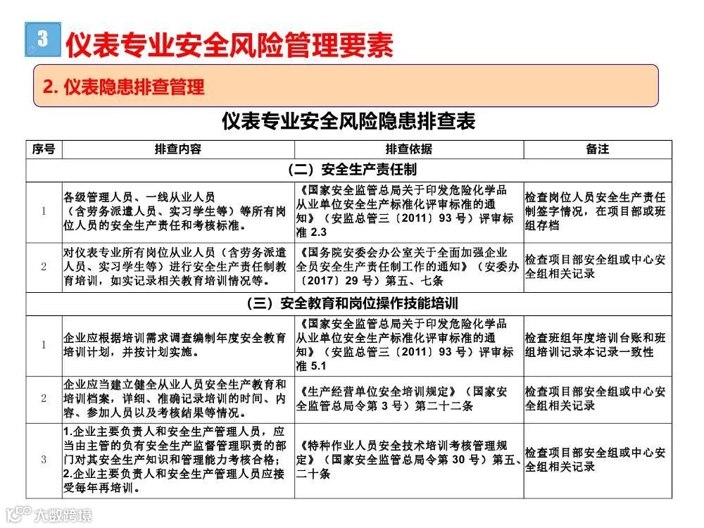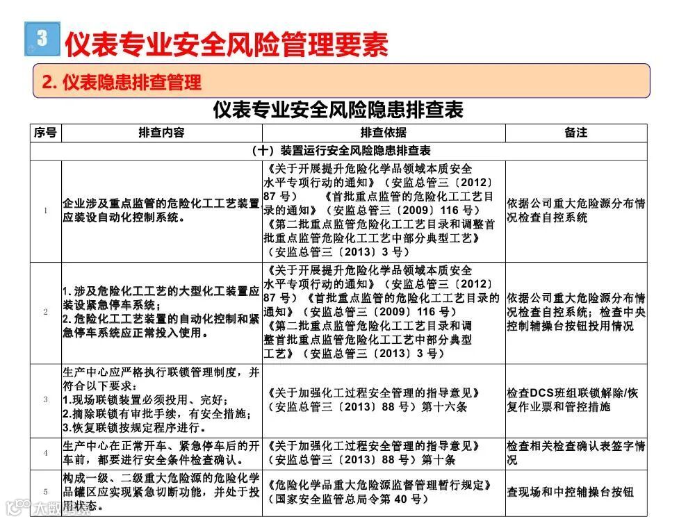 2.综合性排查是指以安全生产责任制、各项专业管理制度、安全生产管理制度和化工过程安全管理各要素落实情况为重点开展的全面检查;