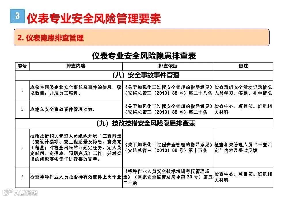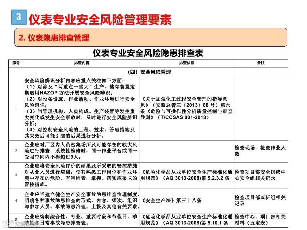 企业仪表安全风险评估可参考表4.4-1中(53项)规定的相关内容开展。