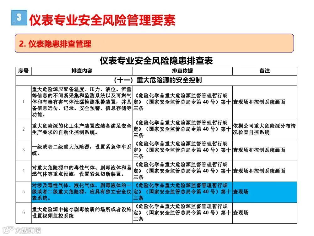 (5)涉及“两重点一重大”装置或储存设施的自动化控制设施不符合《危险化学品重大危险源监督管理暂行规定》(国家安全监管总局令第 40 号)等国家要求。