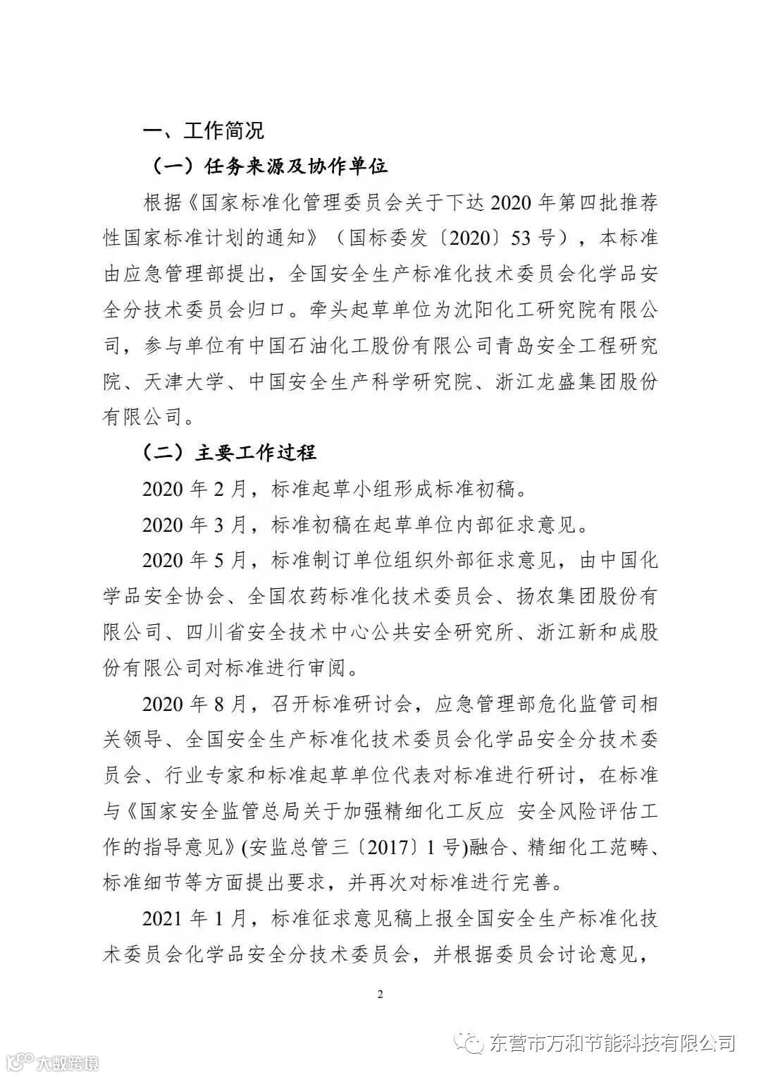 2.精细化工反应安全风险评估规范(征求意见稿)编制说明