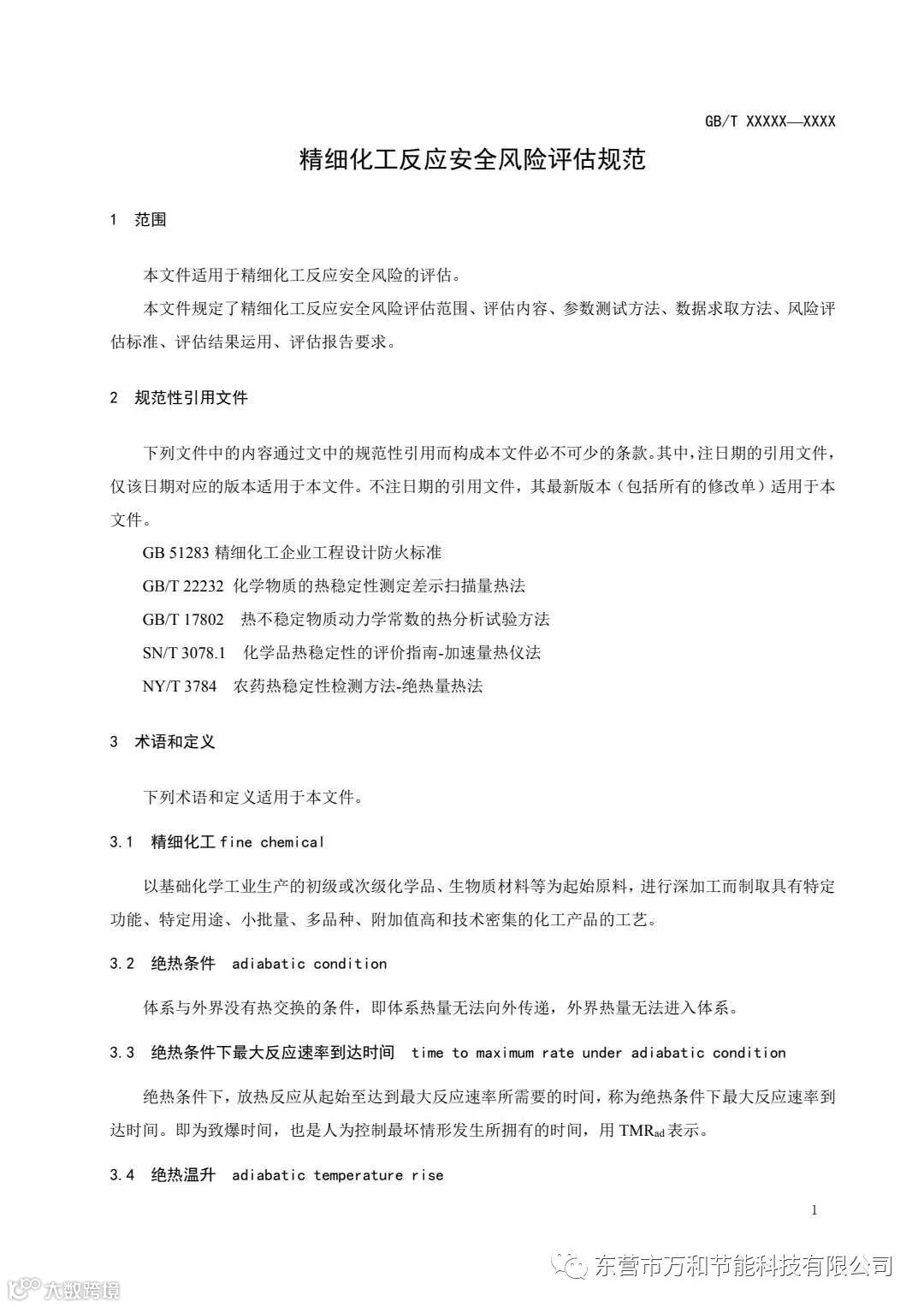 附件:1.精细化工反应安全风险评估规范(征求意见稿)
