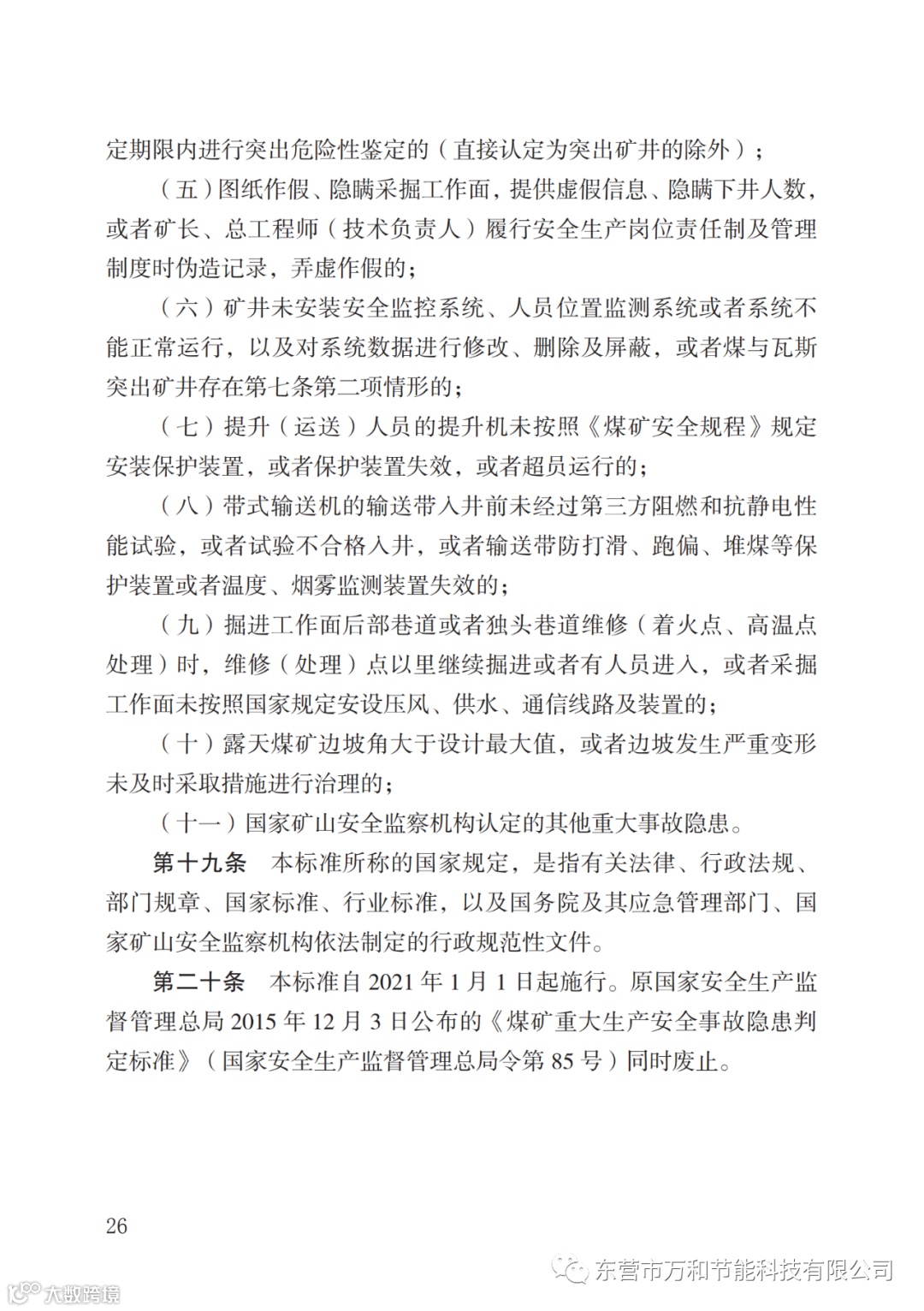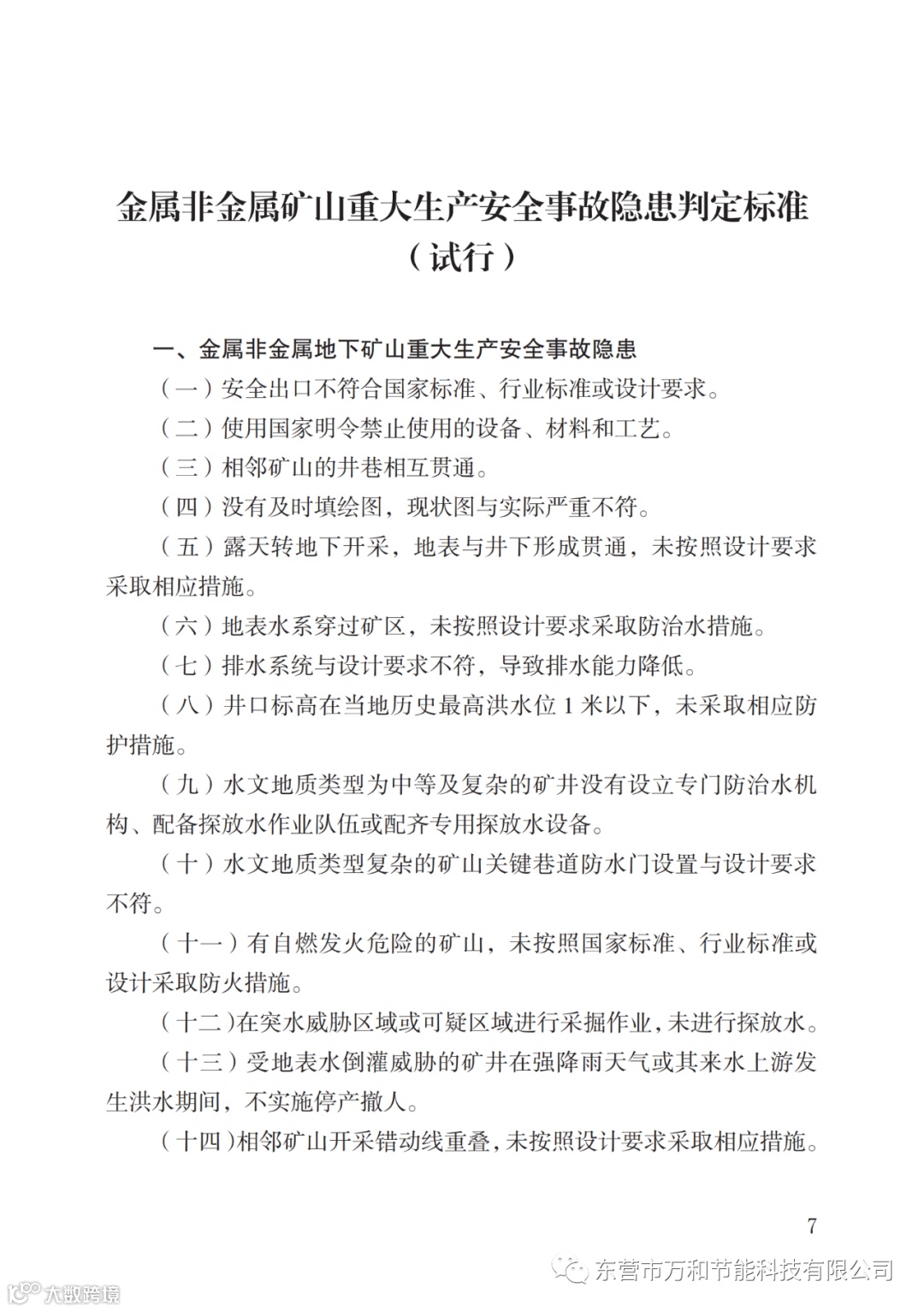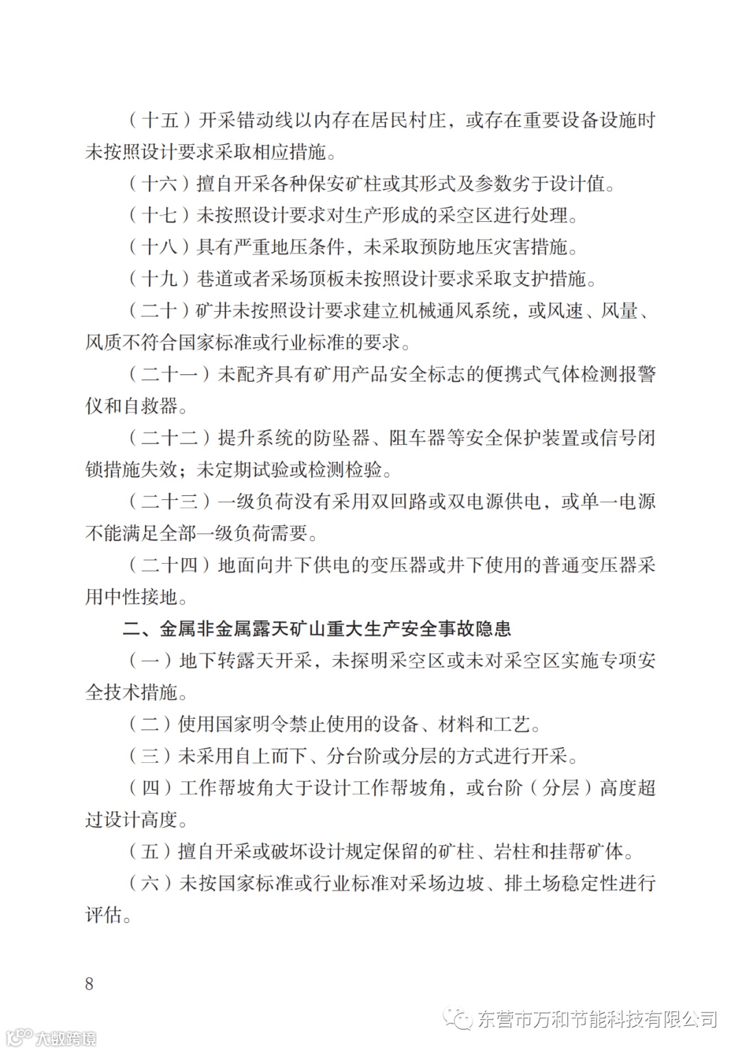 (一)金属非金属地下矿山重大生产安全事故隐患