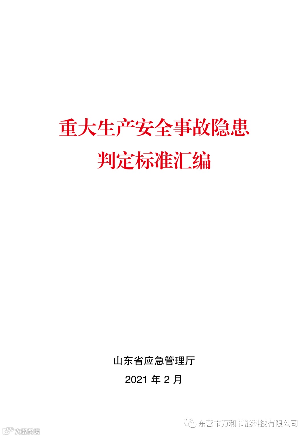 近期,山东省应急管理厅印发了《重大生产安全事故隐患判定标准汇编》(以下简称《重大隐患汇编》),现将《重大隐患汇编》全文公布,请新区各有关部门、各企业深入组织学习宣传贯彻,结合工作实际,全面落实企业安全生产主体责任。