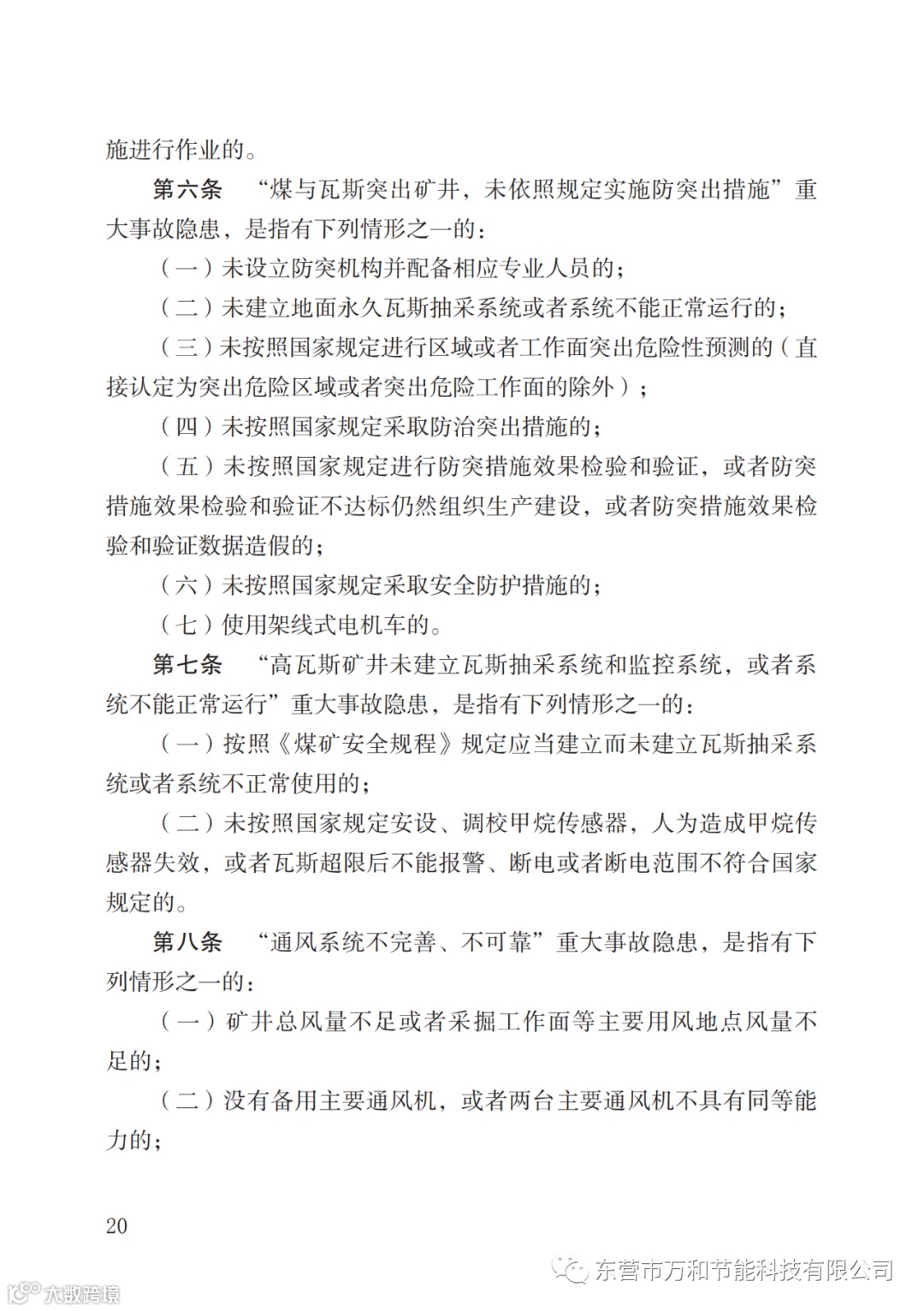 20.矿井未按照设计要求建立机械通风系统,或风速、风量、风质不符合国家标准或行业标准的要求。