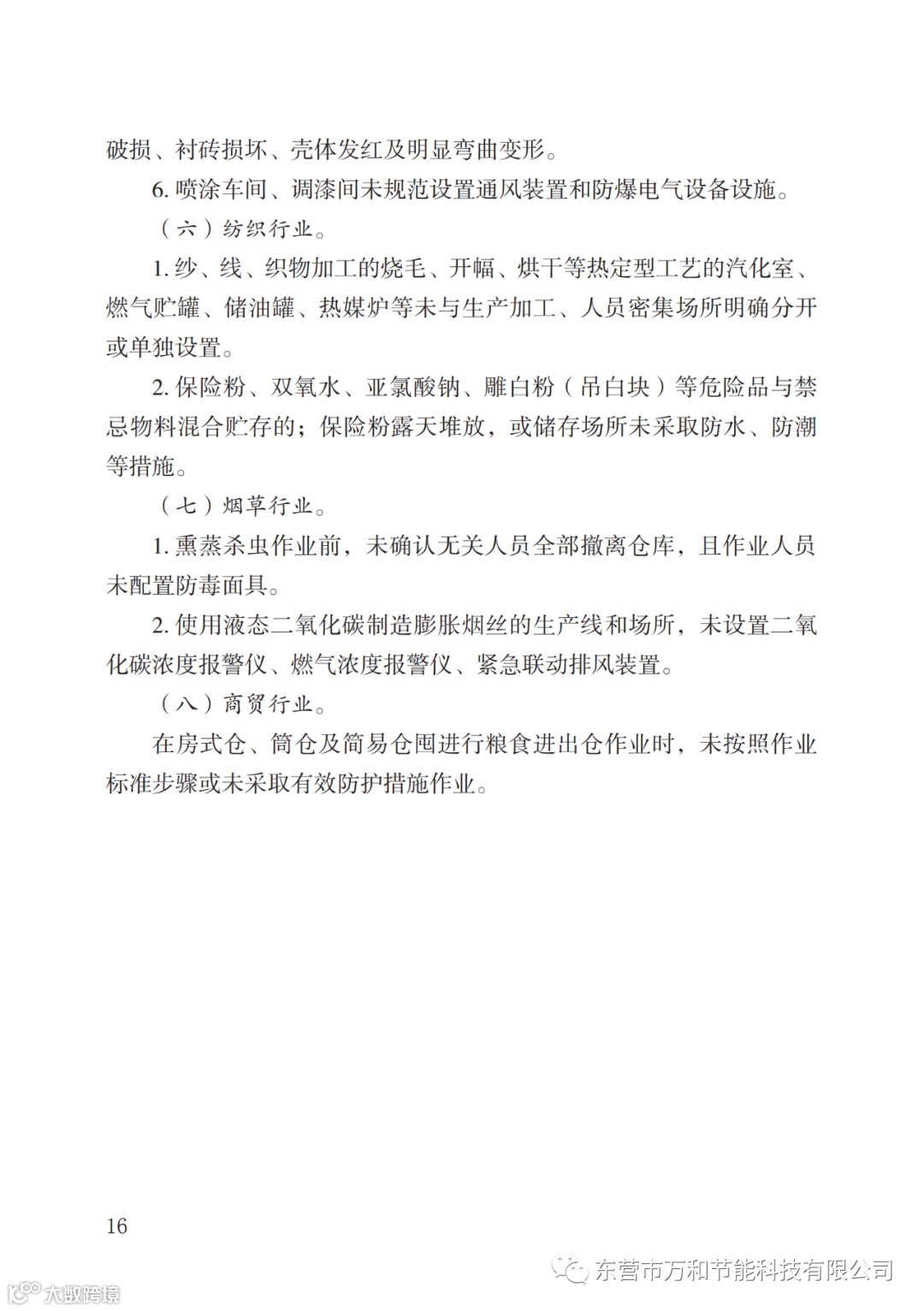 (1)纱、线、织物加工的烧毛、开幅、烘干等热定型工艺的汽化室、燃气贮罐、储油罐、热媒炉等未与生产加工、人员密集场所明确分开或单独设置。