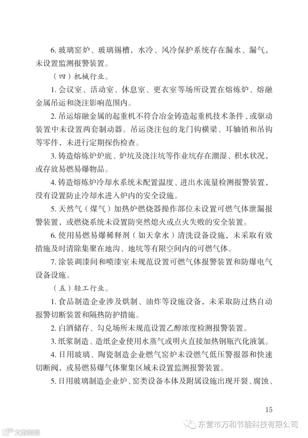 (4)日用玻璃、陶瓷制造企业燃气窑炉未设燃气低压警报器和快速切断阀,或易燃易爆气体聚集区域未设置监测报警装置。
