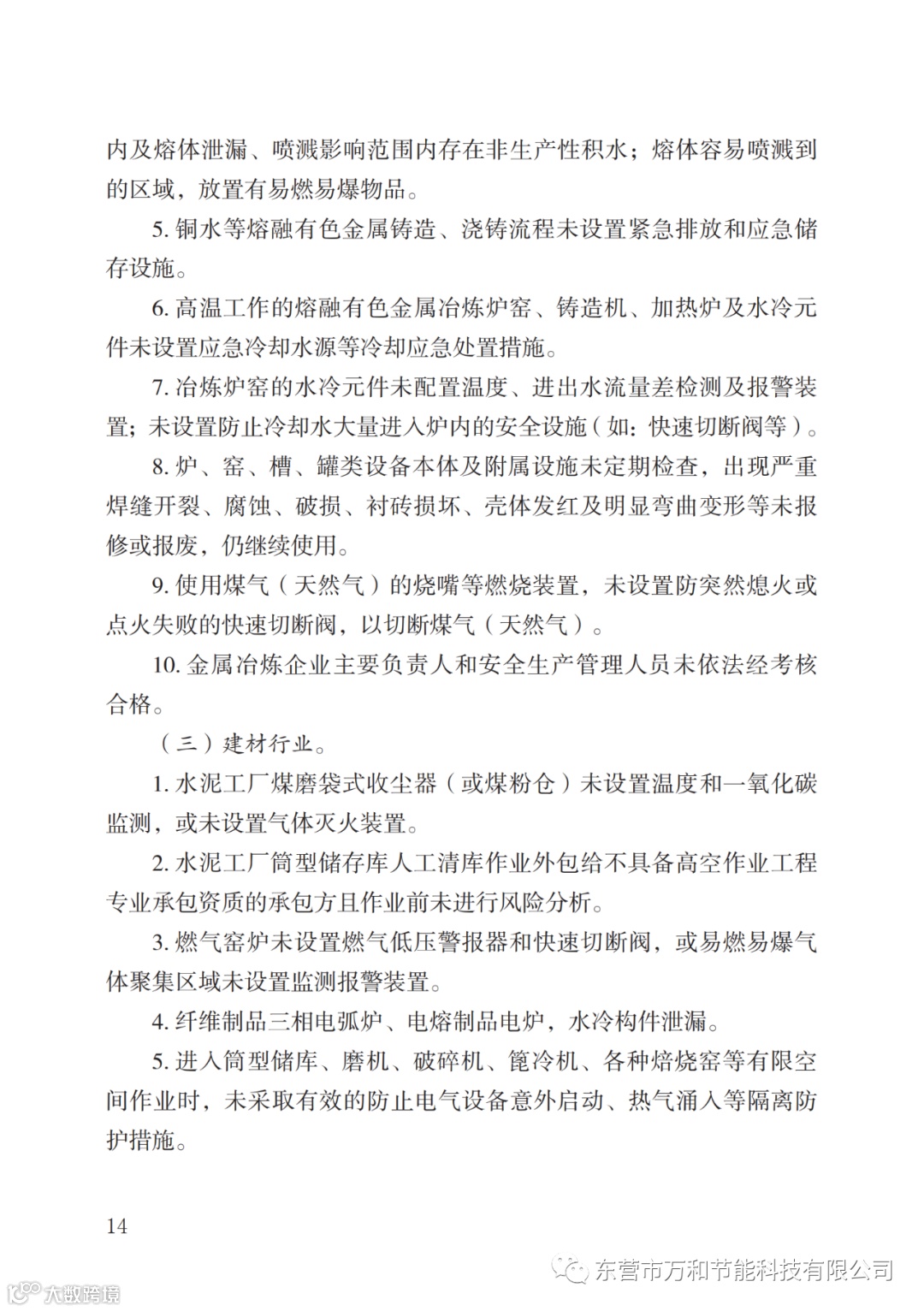 (1)水泥工厂煤磨袋式收尘器(或煤粉仓)未设置温度和一氧化碳监测,或未设置气体灭火装置。