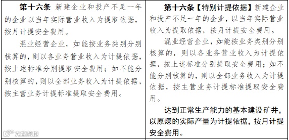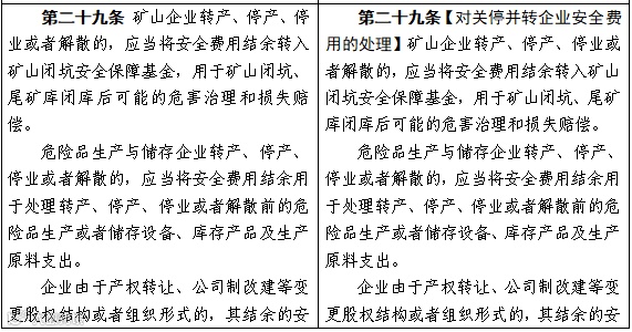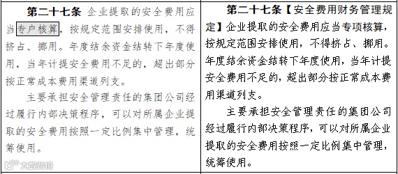▼ 以下为2019年7月8日应急管理部在对《企业安全生产费用提取和使用管理办法》(财企〔2012〕16号)执行情况调查基础上,起草了《企业安全生产费用提取和使用管理办法(征求意见稿)》(应急厅函〔2019〕428号),左边表格为财企〔2012〕16号文修订前,右边表格为修订后:(节录)