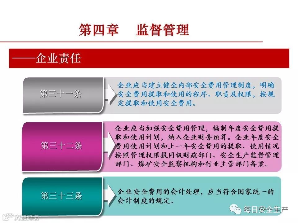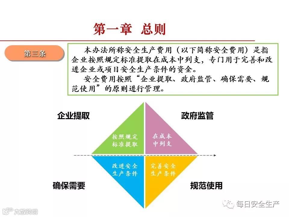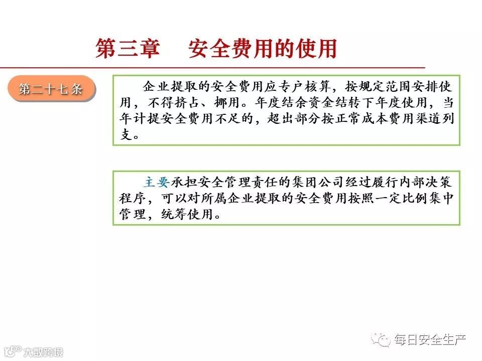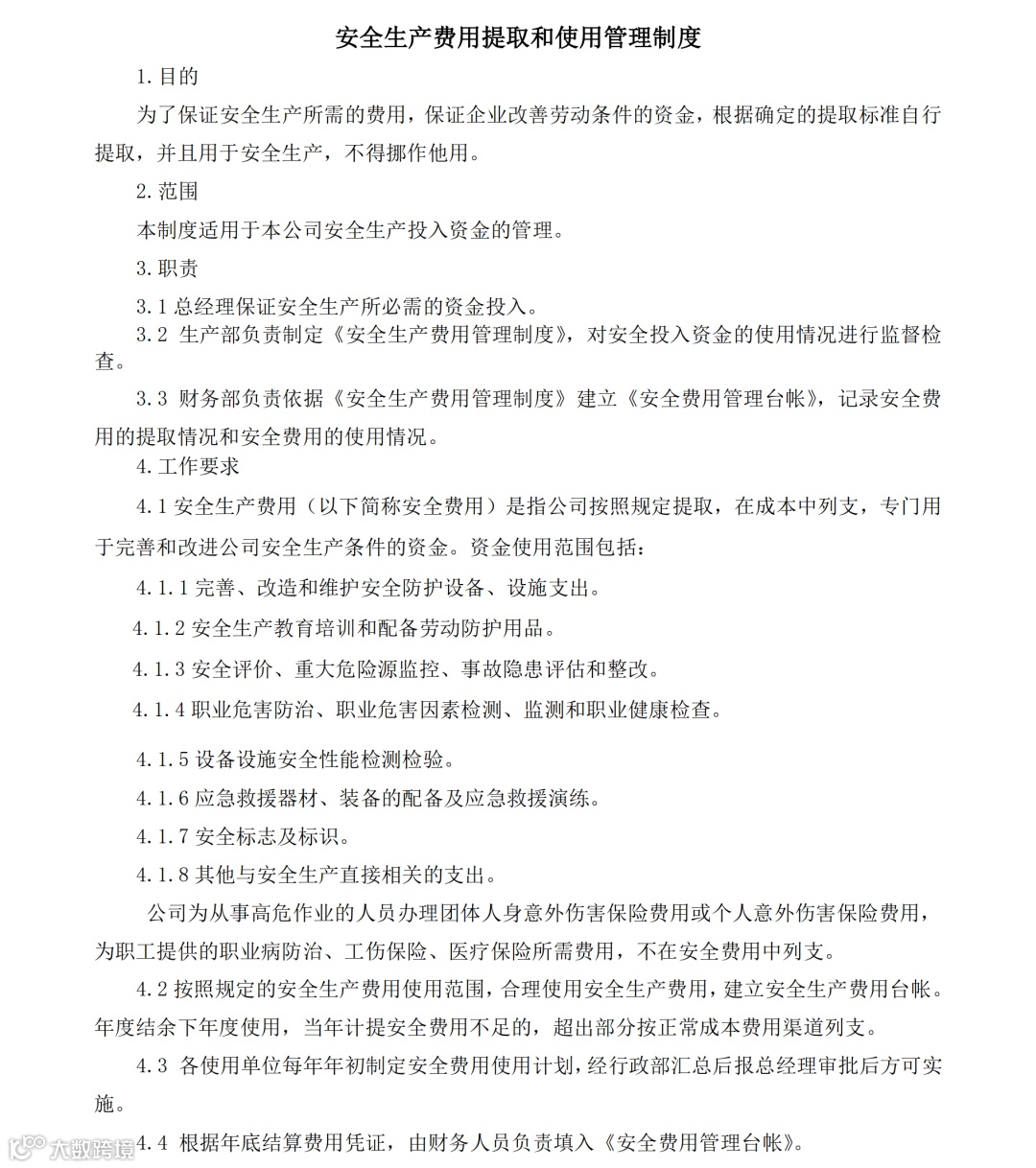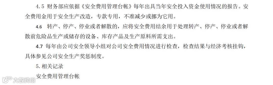 1、企业应建立和落实安全费用管理制度,足额提取安全生产费用,专项用于安全生产;