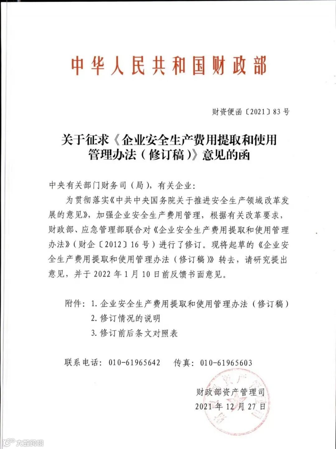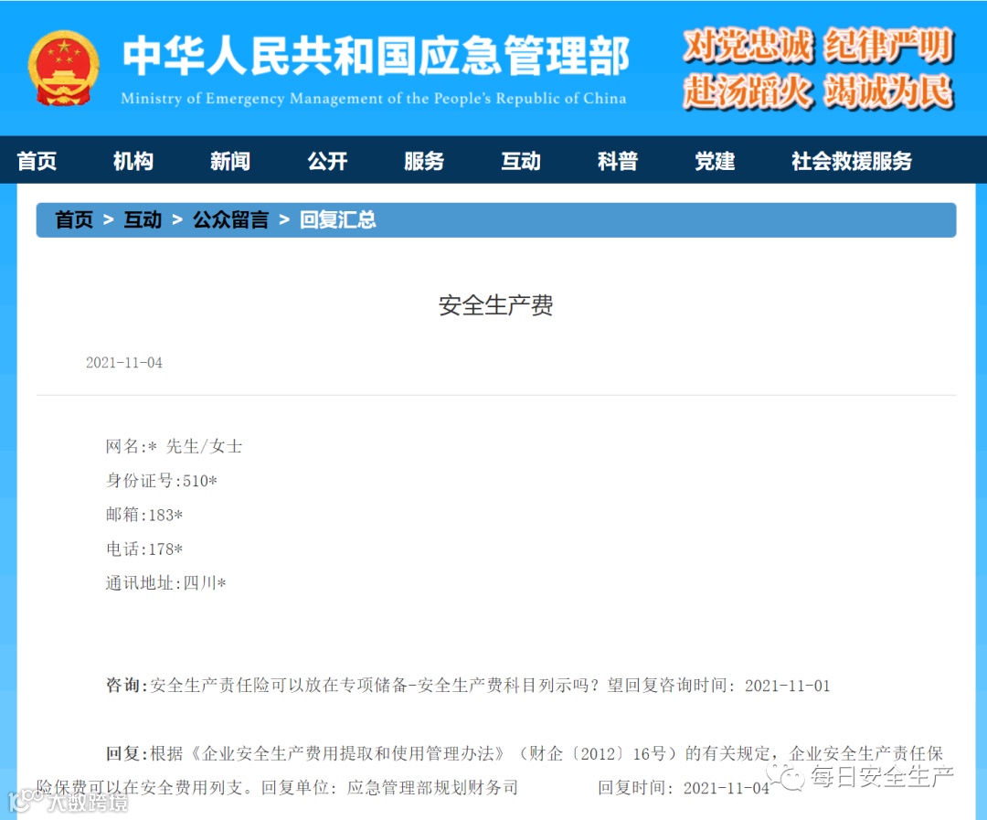 2022年3月,有网友向应急管理部提问:《企业安全生产费用提取和使用管理办法征求意见稿》是否已经审批通过? 并得到应急管理部规划财务司的官方回复。