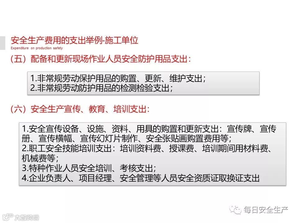 (五)安全生产宣传、教育、培训和从业人员发现并报告事故隐患的奖励支出;
