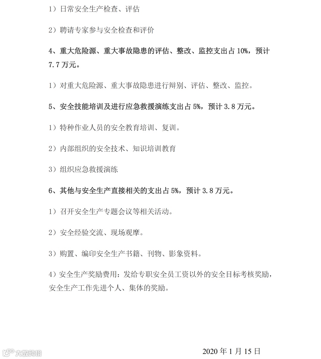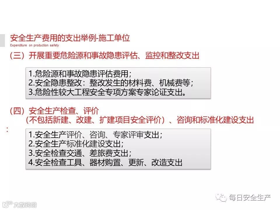 (三)开展重大危险源检测、评估、监控支出,安全风险分级管控和事故隐患排查整改支出,安全生产信息化建设、运维支出;