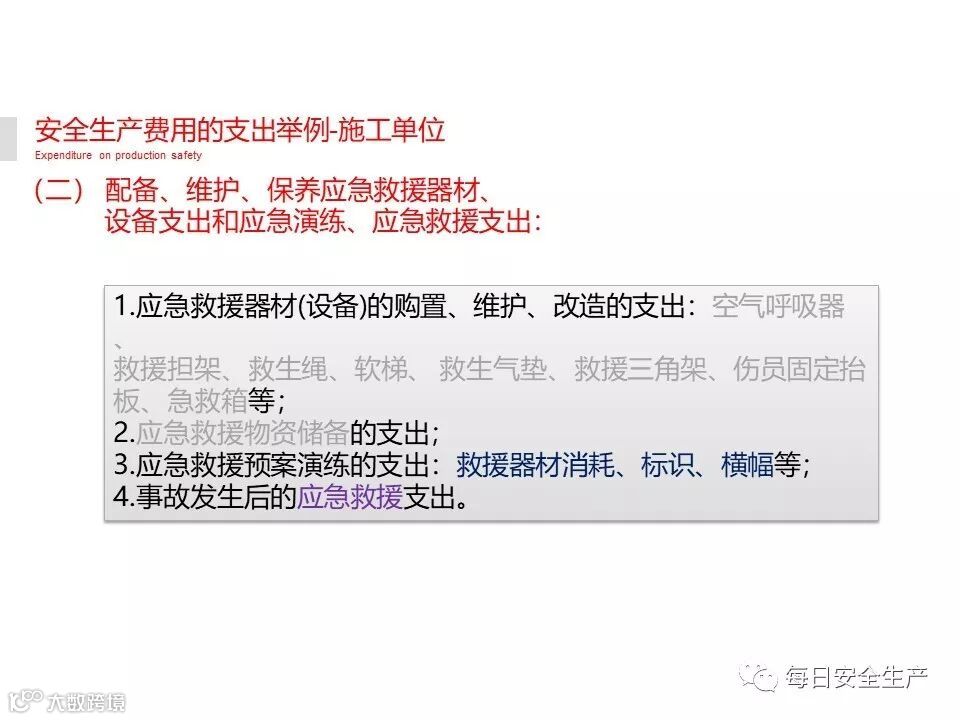 (二)配备、维护、保养应急救援器材、设备支出和应急救援队伍建设、应急预案制定与应急演练支出;