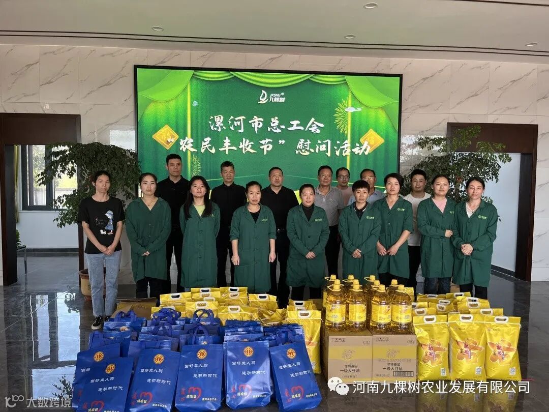 9.28日这天,漯河市总工会的组织成员一行人带着对企业员工的关心来到九棵树进行慰问活动,为参加农民丰收节紧张生产的一线员工送来装有毛巾杯子生活用品的“爱心礼包”还有大米和油,把党和政府、工会组织的关爱送到职工心坎上,让职工们切实感受到党和政府的关怀以及工会组织的温暖。