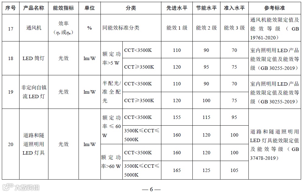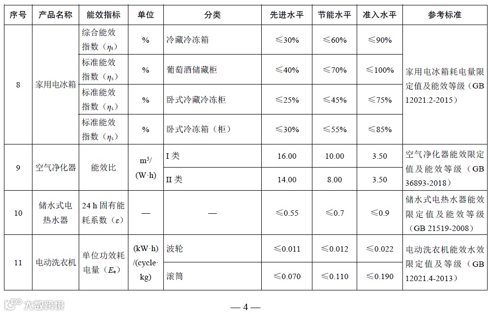 为相关产品设备进入市场的最低能效水平门槛,数值与现行有关能效标准限定值一致;