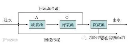 A-O工艺法也叫厌氧好氧工艺法,A是厌氧段,用于脱氮除磷;O是好氧段,用于除水中的有机物。该工艺的主要缺点有两个:一是由于没有独立的污泥回流系统,从而不能培养出具有独特功能的污泥,难降解物质的降解率较低;二是若要提高脱氮效率,必须加大内循环比,因而加大运行费用。此外,内循环液来自曝气池,含有一定的DO,使A段难以保持理想的缺氧状态,影响反硝化效果,脱氮率很难达到90%。