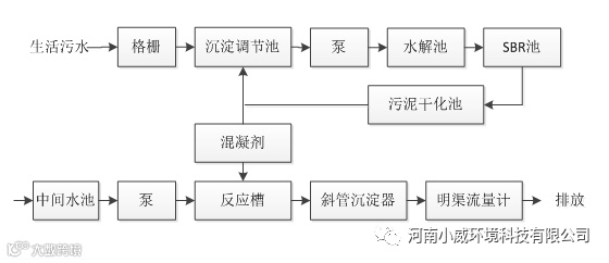 当单一的处理方法处理效果不理想时,为了达到污水排放的标准,可以使用多种方法联合的方式。最常见的是物理-化学处理法,其基本工艺如下: