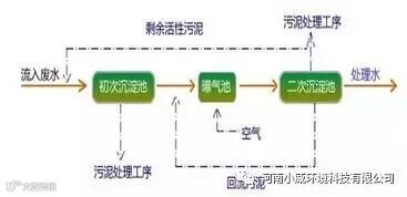 活性沟污泥工艺法是一种好氧处理方法,系统中包括水系统、泥系统和气系统,主要设备为曝气池和二次沉淀池。对该工艺的要求是污泥除了要具有氧化和分解有机物的能力外,还要有良好的凝聚和沉降性能,以使活性污泥能从混合液中分离出来,得到澄清的出水。