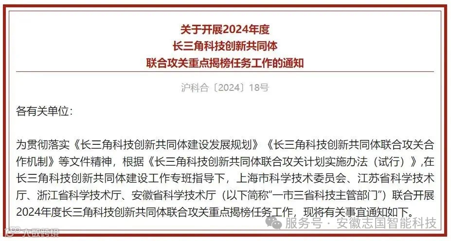 2024年9月一市三省科技主管部门联合开展2024年度长三角科技创新共同体联合攻关重点揭榜任务工作,全国一共有41项需求任务清单(集成电路领域八项、人工智能领域十五项、生物医药领域十二项、未来产业领域六项)成功发榜,最后29家单位成功立项,上海仅三家。