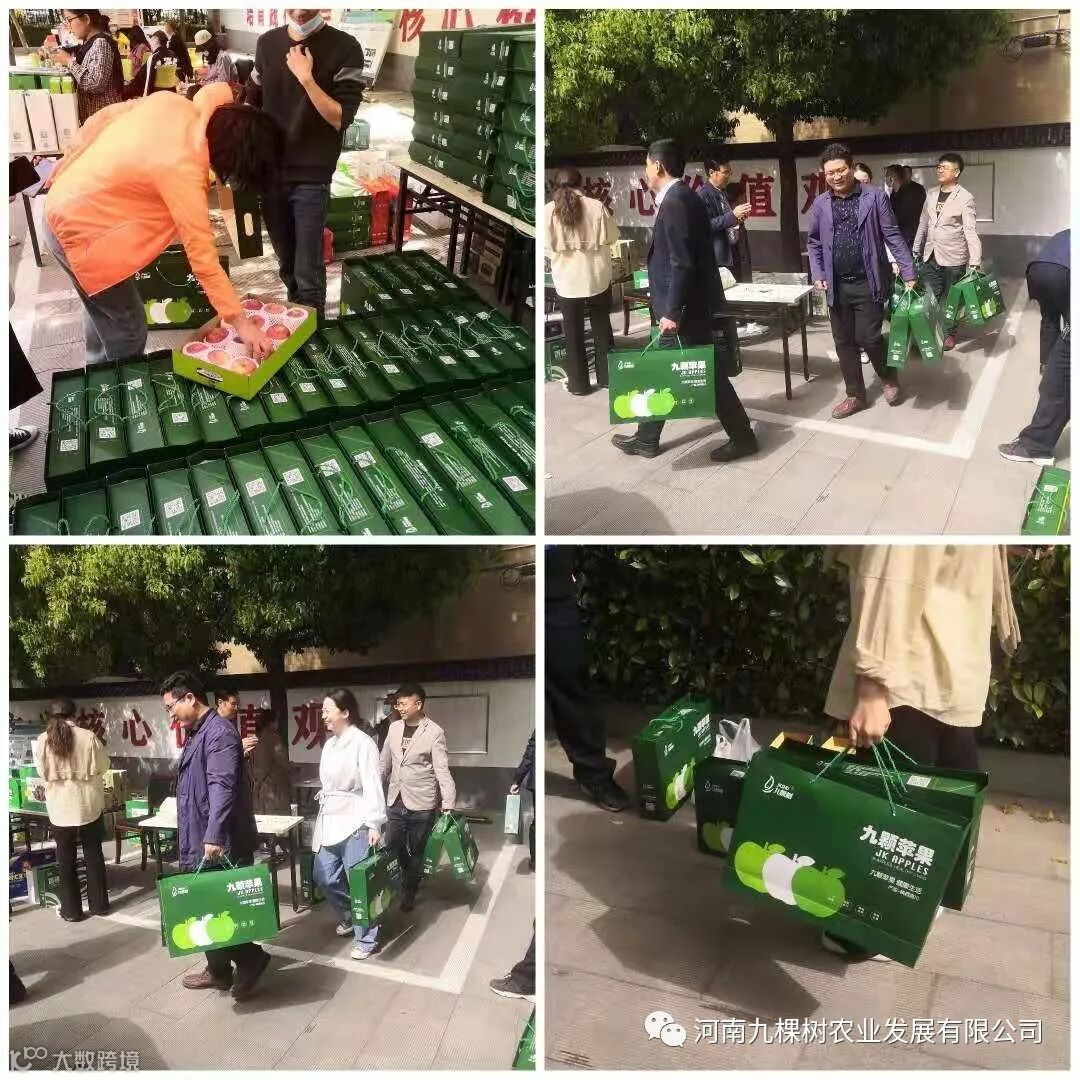 本次活动现场,我们不仅带来了深受大家喜爱的香椿酱,香椿小菜,纯手工红薯粉条,拌面奇遇等九棵树特色产品,还带来我们的新品—脆甜多汁的“九颗苹果”,大家品尝过后,200提苹果不一会儿就一抢而光了,大家可以看一下现场的火爆场景。