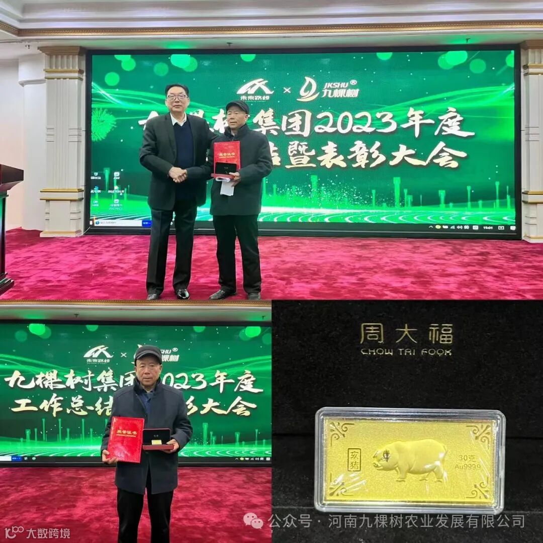 而二十年如一日的坚持一份工作又是什么样的体验呢?在九棵树集团从业二十多年的老员工赵献国同志他敬业、坚持、拼搏、上进。虽没有轰轰烈烈但也足够伟大,在这次年会中,赵献国同志发表了离退休感言,董事长也亲自为赵老颁发了30g纯金纪念金条。离别总是伤感的,虽然退休离开工作岗位,但赵老始终是九棵树的一份子!