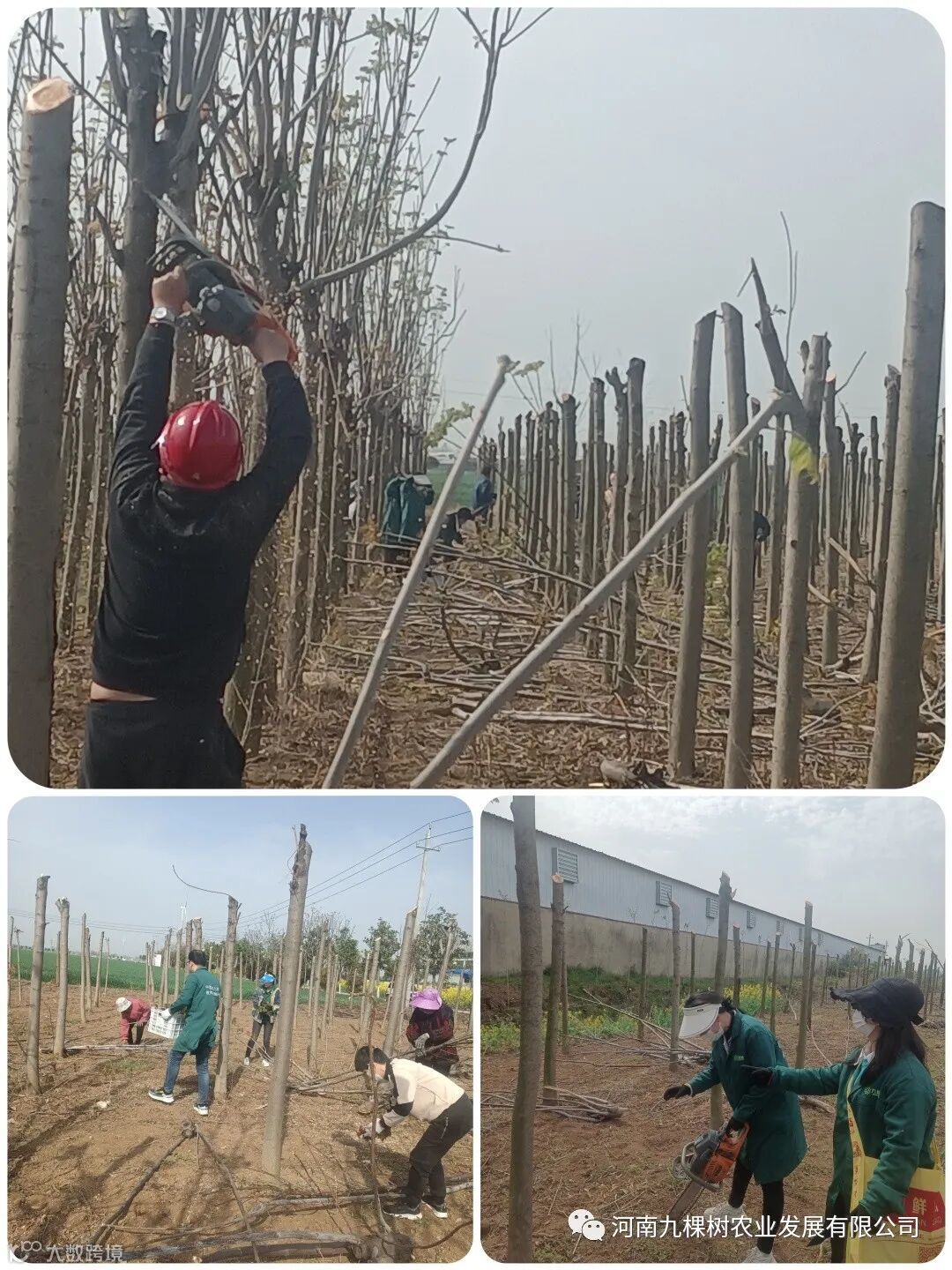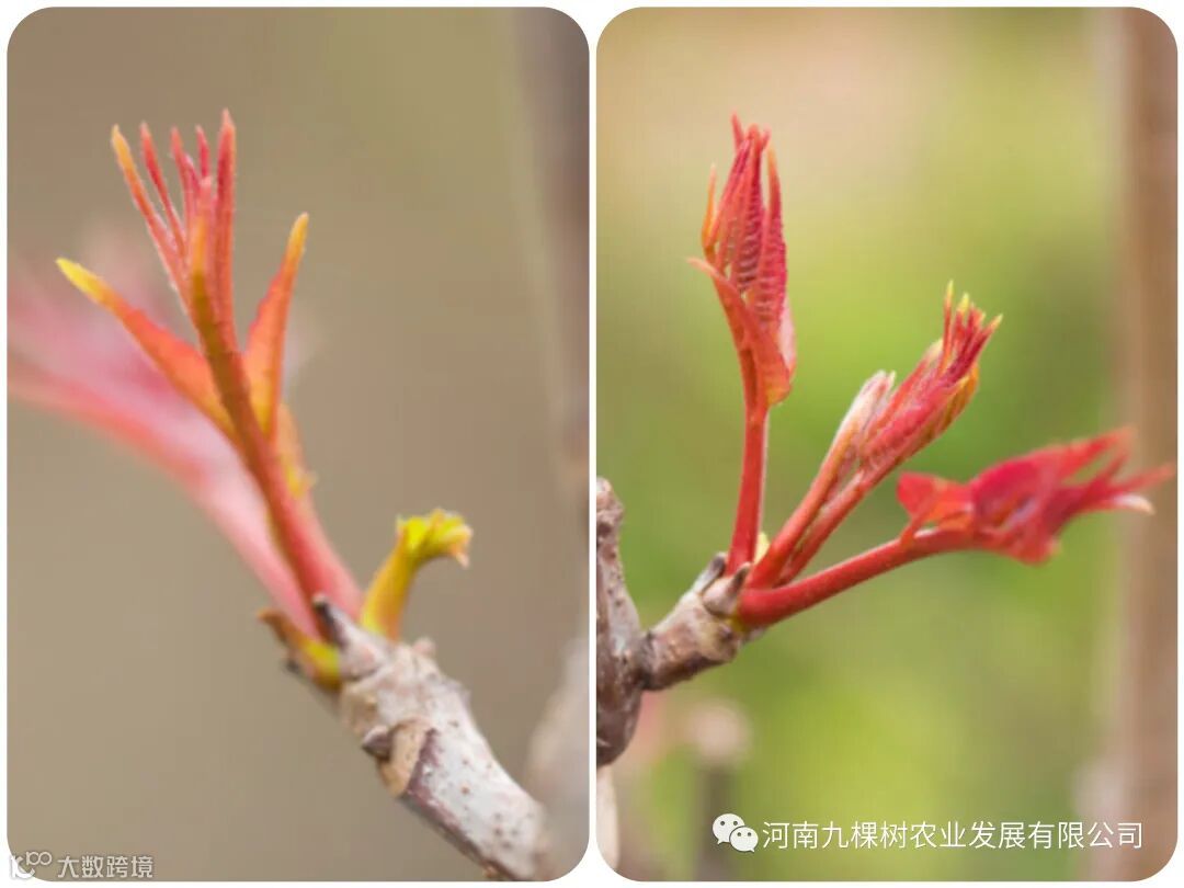 在春季的4月份左右,香椿树需要进行一次造型修剪。九棵树的香椿林里迎来了今年的春剪时间,二茬香椿芽采摘和修剪是同时进行的。需要将养护两年以上的植株去掉树梢的顶芽,这样它就可以很快的萌发2-3个新芽。