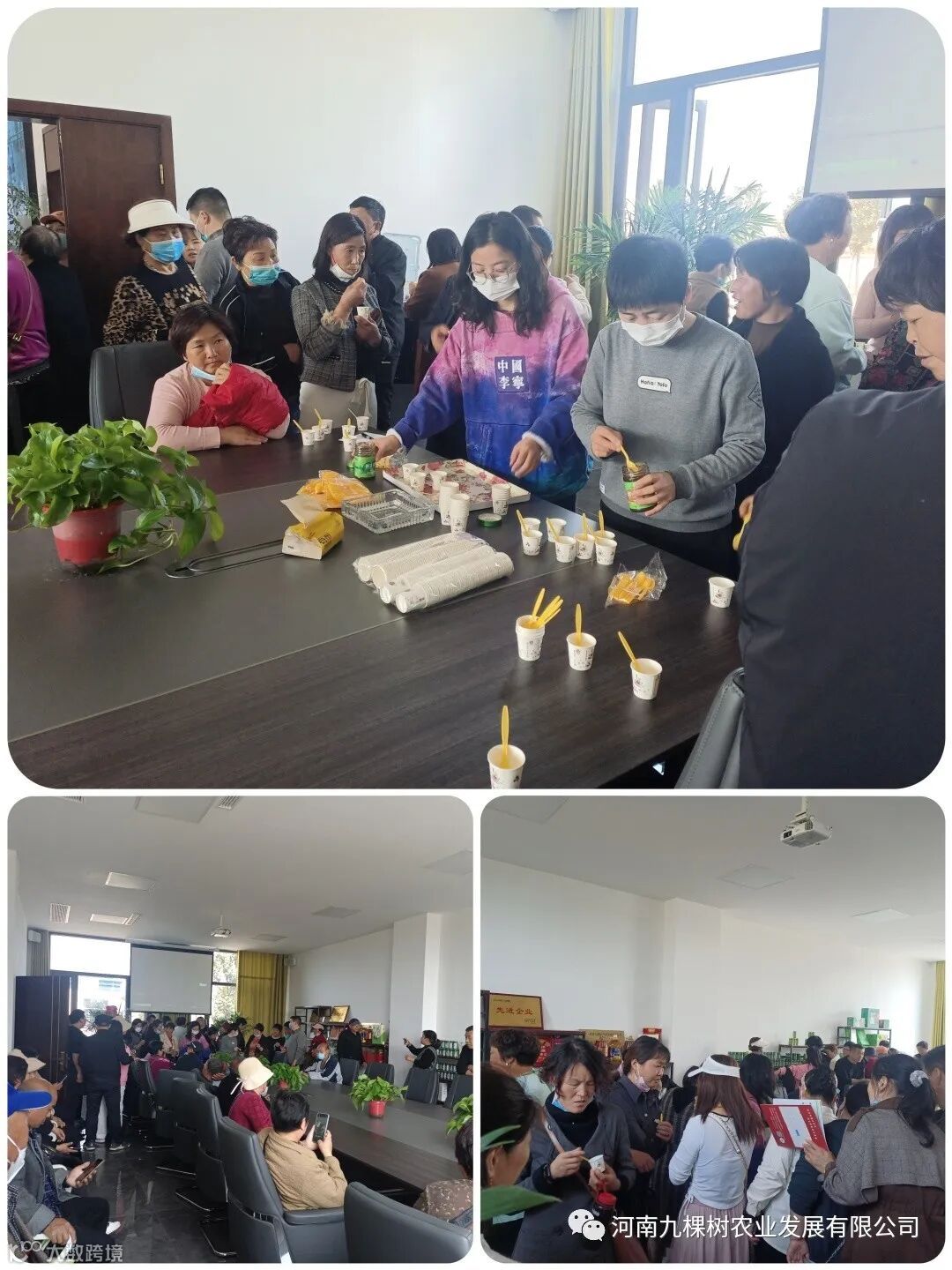 最后来到了办公区的会议室,芮总给前来参观的老乡们讲解了我们九棵树的发展史和香椿酱的采摘和生产流程,并回答了对香椿种植感兴趣的老乡的提问。