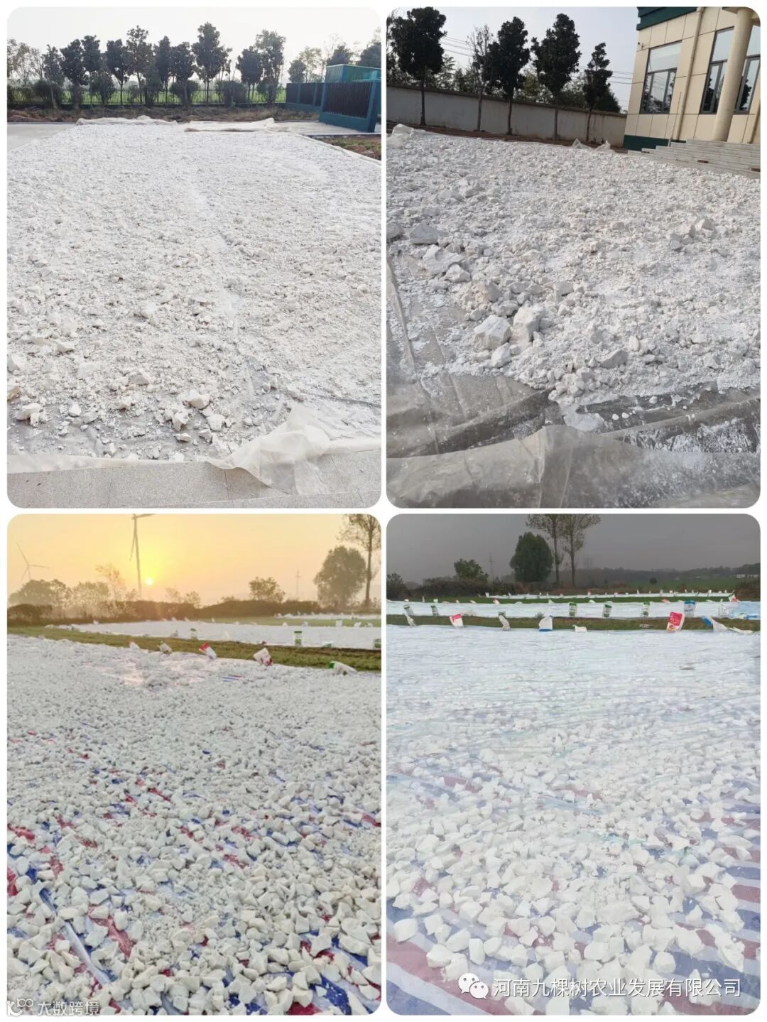 小块的粉子在太阳底下晒干,要是太阳够足,几天之后就可以收起来了。做粉条的前期打粉子的工序就告一段落,接下来就是准备做粉条了。