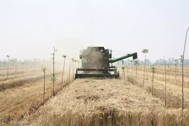 香椿和小麦套种的地块里,香椿树间的小麦无法使用收割机,由九棵树人手工收割。