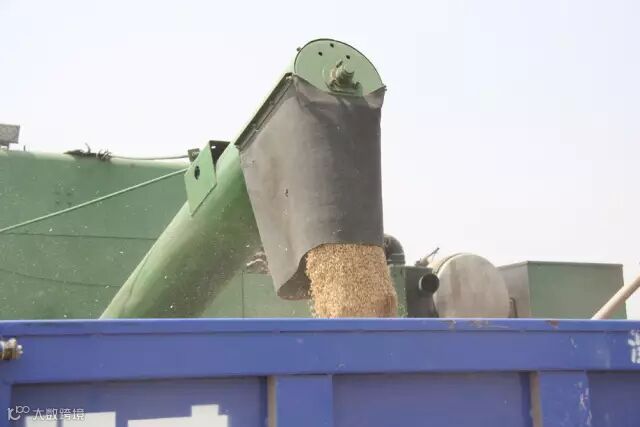 麦子一根根笔直地竖着,组成一个个方块形麦田。不远处收割机不停地调转方向,像切蛋糕一样把麦田一块块收入囊中,留下密密匝匝满地秸秆。