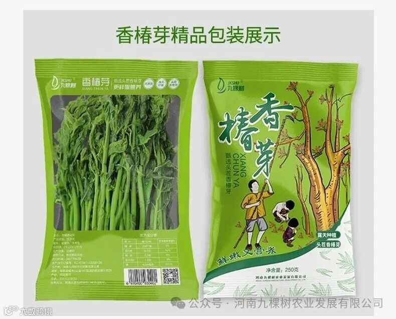 好在,有一家名为九棵树的企业,如春日暖阳,为广大香椿爱好者带来福音。作为专注于香椿全产业链的企业,九棵树致力于让人们不仅能在限定季节品尝到新鲜香椿芽,还通过不断创新和研发,推出一系列丰富多样的香椿类产品。