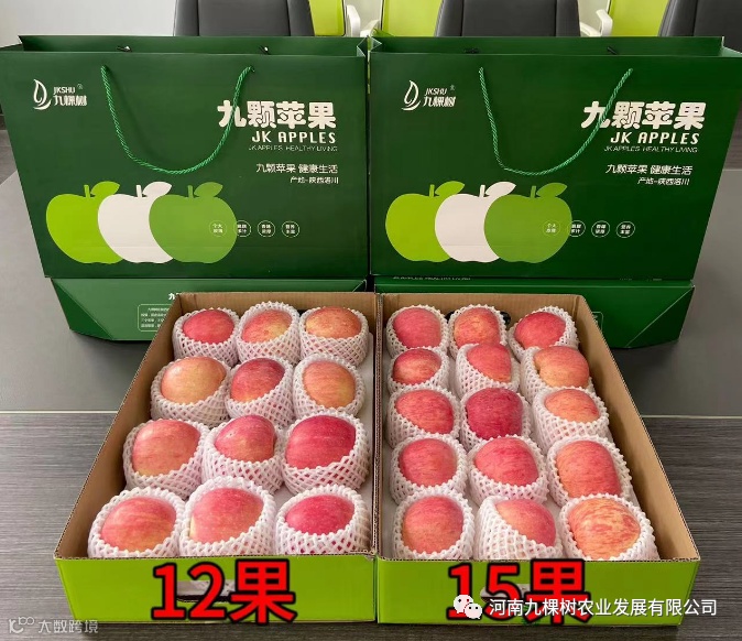 九棵树的洛川苹果已经销售好多年了,经过多方调研,客户们的反馈都很好,有人喜欢大果,也有人喜欢小果,针对这一方面,今年公司专门做了调整,苹果礼提分为 12 果和 15 果,虽然数量不一样,但是重量和口感都是一样的。