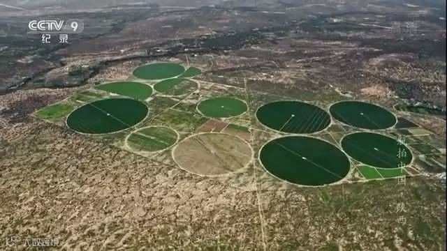 不,这是当地种植马铃薯的农田,以水源为中心旋转灌溉,所以空中看就是绿色圆圈。