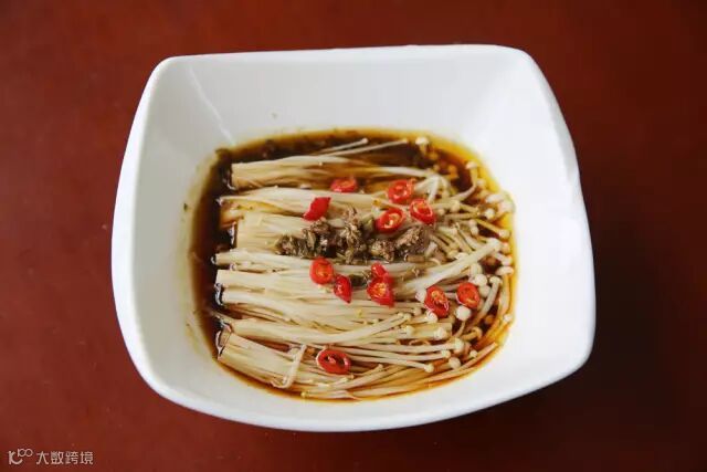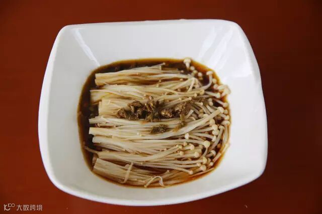 6.在金针菇上浇一点热油,完成~