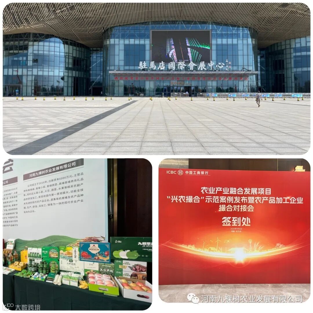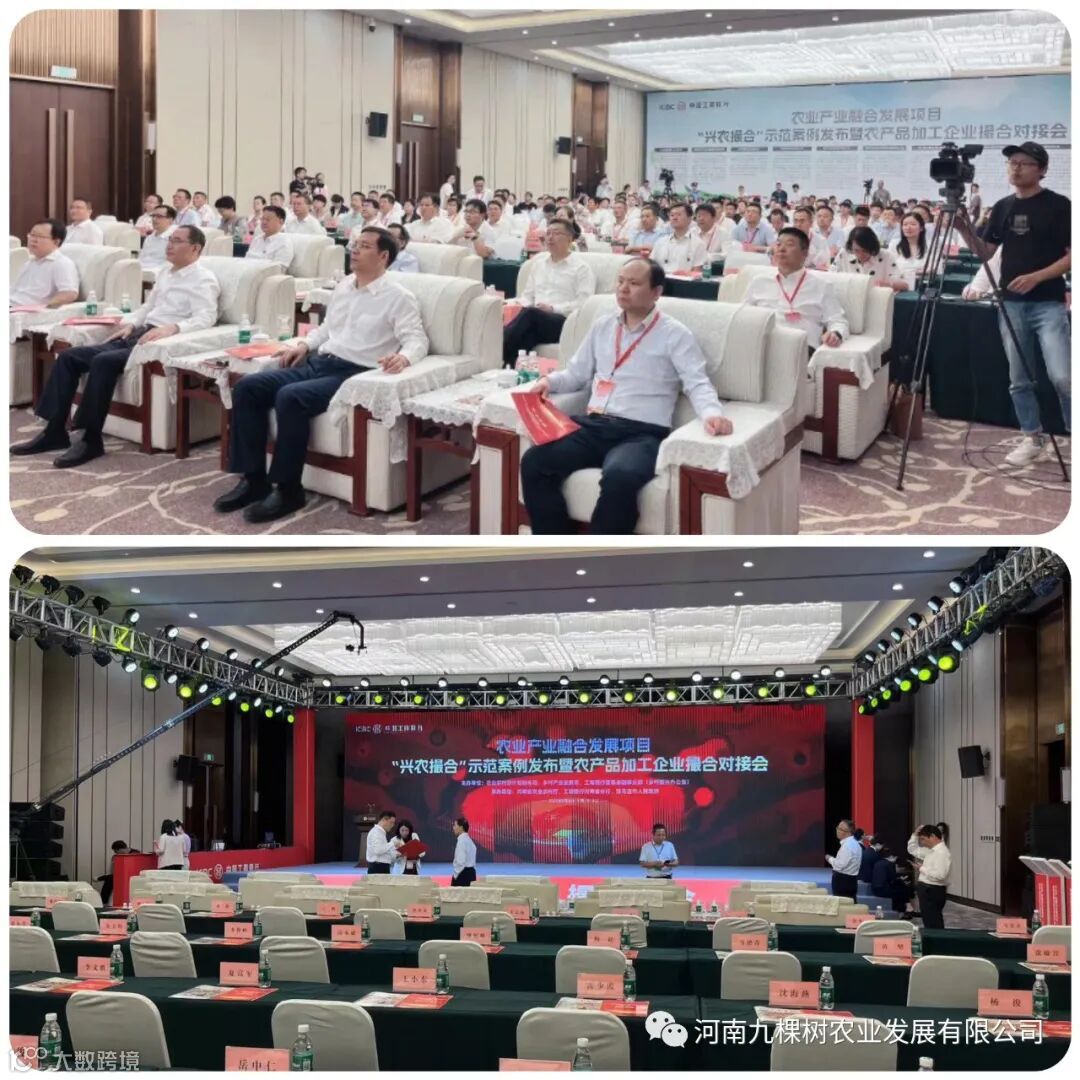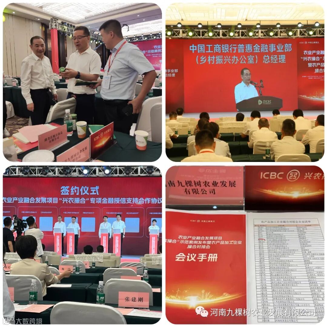 9月6日,由农业农村部计划财务司、乡村产业发展司、中国工商银行普惠金融事业部(乡村振兴办公室),河南省农业农村厅、工商银行河南省分行主办,驻马店市人民政府承办的农业产业融合发展项目“兴农撮合”示范案例发布暨农产品加工企业撮合对接会在河南省驻马店市国际会展中心举办,九棵树集团作为农产品加工代表企业受邀参加本次会议。