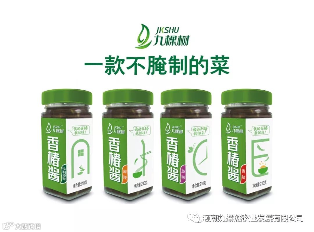 吃过九棵树香椿酱的人都知道,我们的香椿酱口感非常好,老人小孩都喜欢吃,因为我们是一款炒制的不腌制的香椿酱,对于越来越注重健康的人群来说是非常受欢迎的一款产品。为了满足不同人群的口味需要,我们的香椿酱不仅有原味的,还有香辣,麻辣,秘制原味四种口味供大家选择。