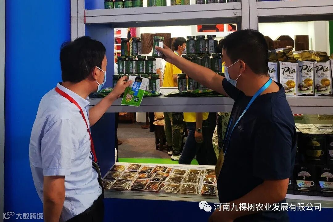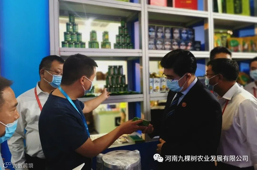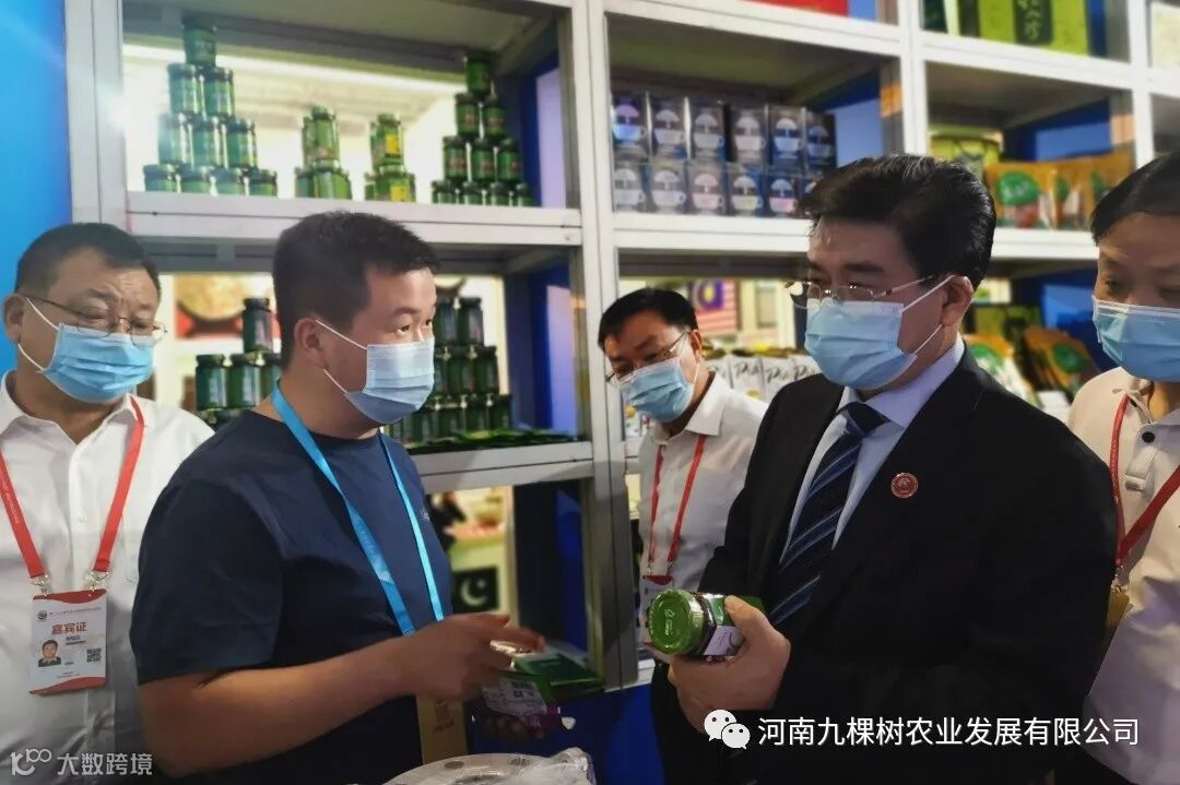 展会期间,九棵树展位吸引了大批客商的目光,河南省何副省长、漯河市商务局姚副局长前来巡视展位,我们销售总监热情为其介绍产品。
