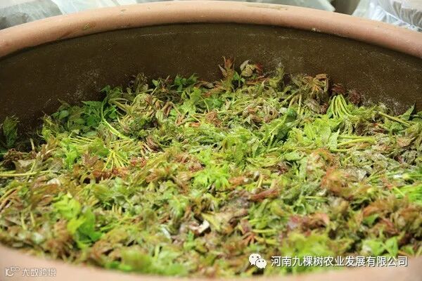 我们腌制的香椿芽是今年研制的新产品,上市短短三四个月的时间却受到一大批客户的欢迎,线上订单络绎不绝,上周有客户直接订购4000袋发往国外,很高兴九棵树的产品能远销国外,更值得自豪的是香椿已经被越来越多的人所了解并喜爱。