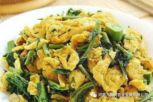 香椿芽清水浸泡两个小时后切碎,鸡蛋打碎,热锅炒熟,然后倒入切好的香椿芽,一道简单营养的香椿炒鸡蛋就好了。