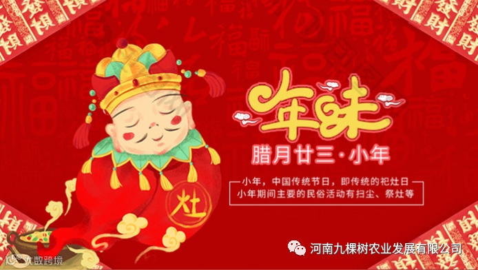 “二十三,灶王爷上了天,二十四,写大字,二十五擂大鼓,二十六炖大肉,二十七宰公鸡,二十八把面发,二十九蒙香斗,三十晚上坐一宿,大年初一街上走。”这熟悉的民谣又一次传入了耳朵,也印在心里。过了小年离春节就更近了,在此九棵树全体员工祝您小年快乐,更祝您在新的一年万事顺意、财源广进!