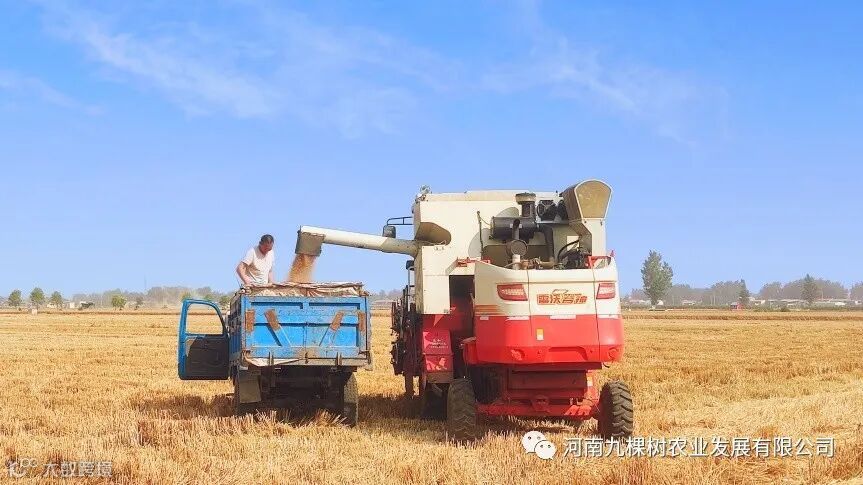 夜来南风起,小麦覆陇黄。九棵树园区的千亩有机小麦在阳光的照耀下散发着金色的光芒,空气中飘散着麦子成熟后的香甜气息。
