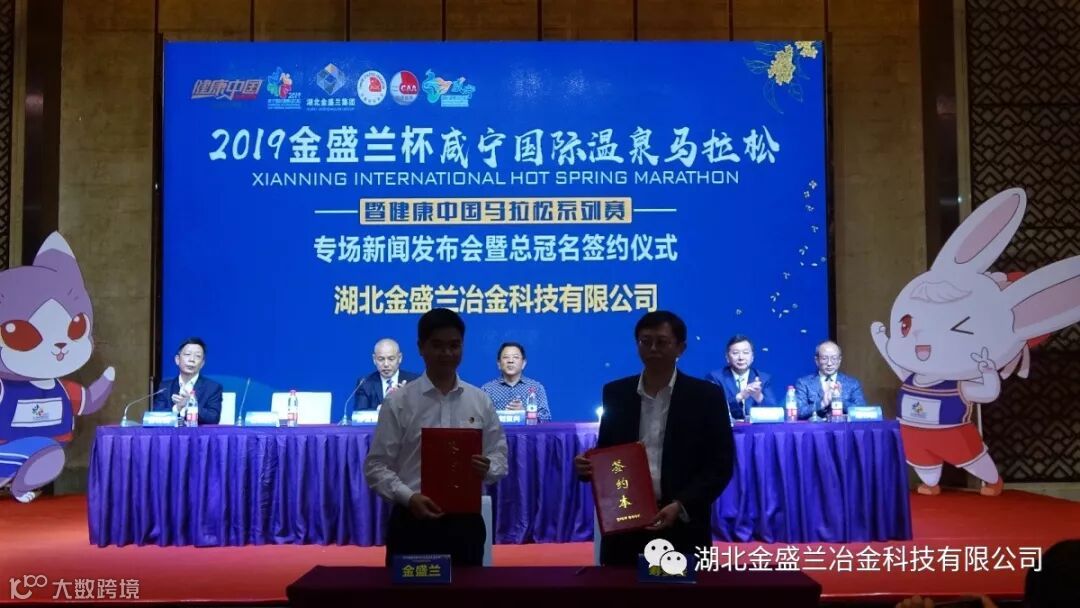 公司党委书记林云庆受陈龙官董事长委托,出席签约仪式并讲话。他说,顽强拼搏、锐意进取、勇往直前、永不止步的马拉松精神,与湖北金盛兰集团所秉持的“自主创新、勇于拼搏、携手共赢、追求卓越”的发展理念完美契合,公司自2017年起,已连续三届总冠名咸宁国际温泉马拉松赛事,为推动全民健身和全民健康的有机融合提供助力。咸宁国际温泉马拉松已连续举办了四届,不断掀起畅跑泉都的热潮,不仅让“香城泉都”“中部绿心”、“国际生态城市”的美誉响彻神州,更是为传播健康乐观的生活理念、积极向上的正能量发挥了重要作用,预祝本届赛事取得圆满成功。
