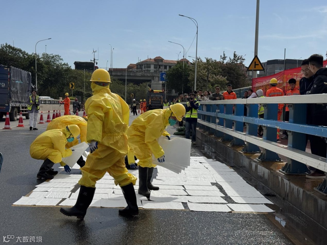 本次演练以人和桥路段广州城区方向发生柴油运输车碰撞导致柴油泄漏事件为背景,可能对周边生态环境造成影响,模拟了突发环境事件的应急处置全过程。