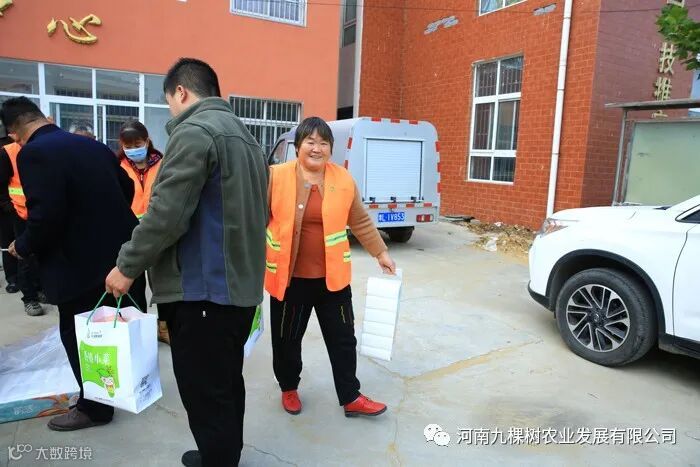 10月26日一大早,九棵树就带上准备好的爱心苹果来到台陈镇政府门前,为广大环卫工人送上节日的祝福。