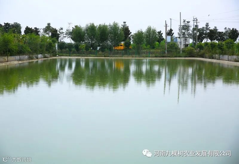 细雨中的鱼塘看起来也格外清幽,或许是天气冷,鱼儿迟迟没有露出水面。