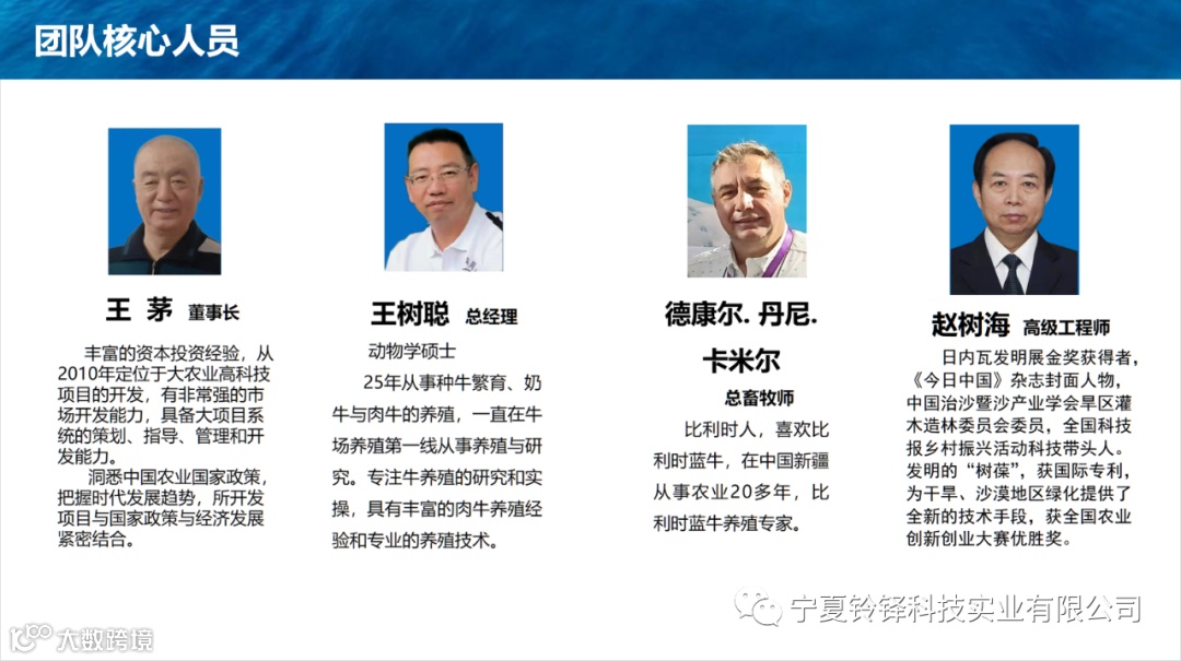 宁夏铃铎科技实业有限公司是一个拥有自有知识产权, 大格局的国际化农牧业公司,是集农业资源、规模、市场、科技、资本、人才聚集型平台高速发展的民营企业。在开拓国际市场方面,是承接北京盛泰和系统集成公司10年境外开拓资源的继承和延伸,在国家开拓"一带一路"的号召下,聚集了一批精通国际经济和地缘政治(特别是俄罗斯和中亚国家)的金融及项目经济专家,在俄罗斯、哈萨克斯坦、乌兹别克斯坦等已经具备长期稳定的客户群和规模性的销售市场。公司以资源整合为重点,以资本投入为纽带,国内外巿场相结合,发展方向定位为:以肉牛全产业链,国内外投资和建设为目标。