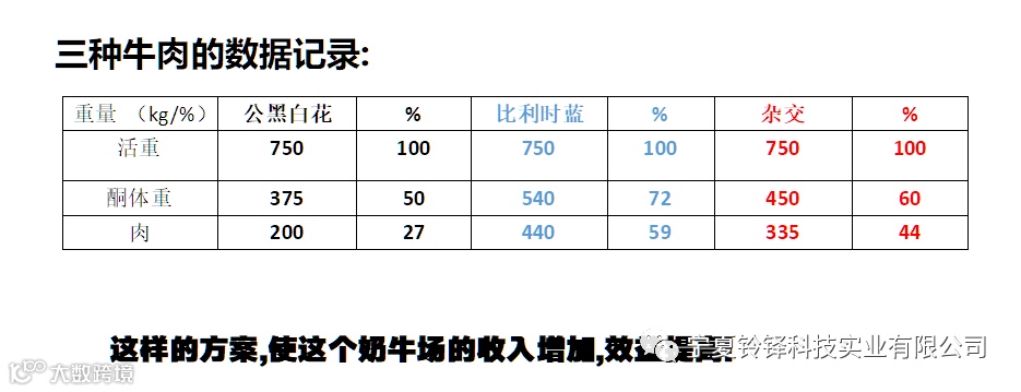一家大型奶牛场公司,杂交部分(10-20%)的奶牛群,主要是年龄较大的母牛,不再用奶公牛精液繁殖,而是用比利时蓝精液繁殖杂交肉牛犊。